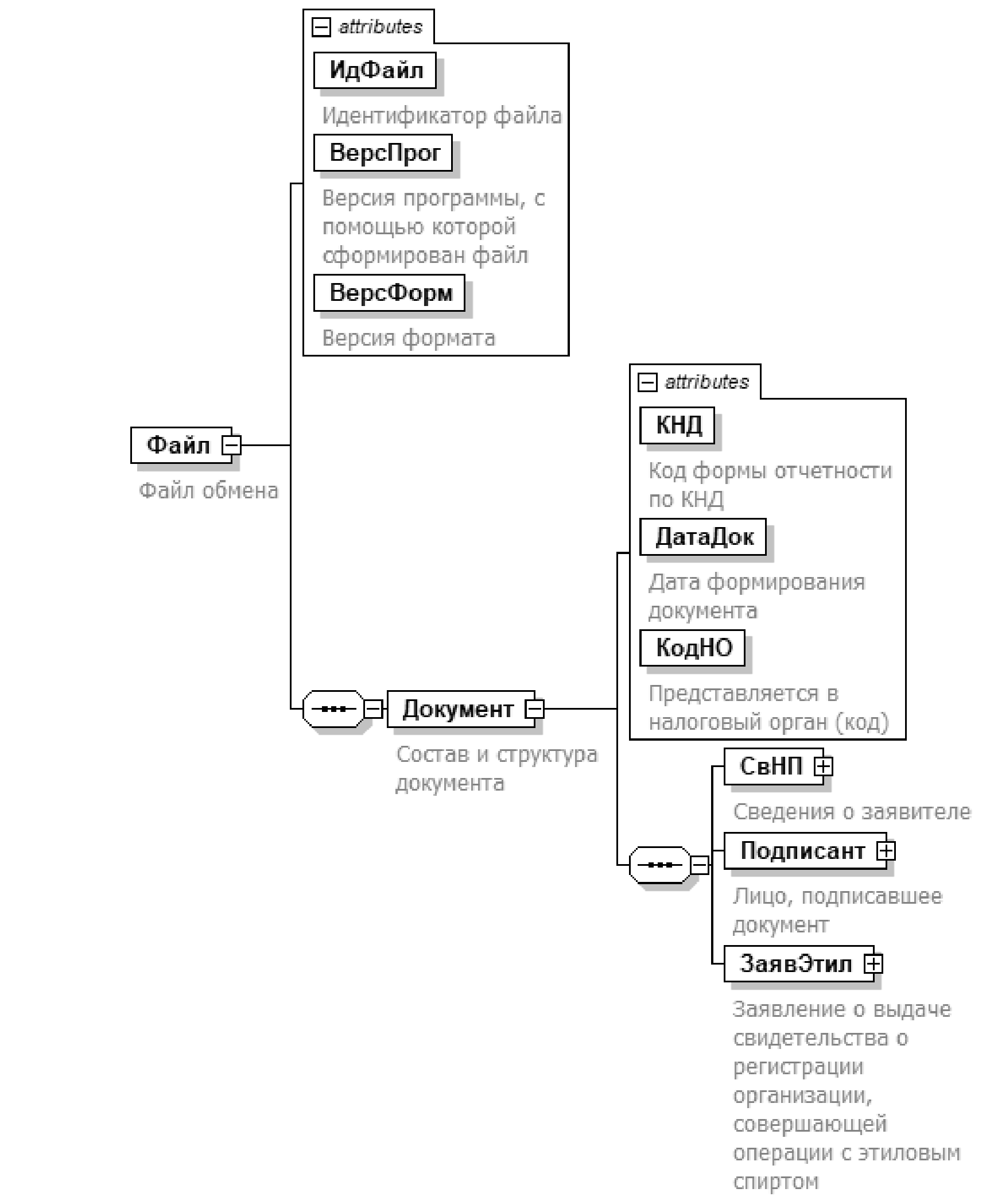 | Заявление о выдаче свидетельства о регистрации организации, совершающей операции с этиловым спиртом | ЗаявЭтил | С | О | Состав элемента представлен в таблице 4.7 |
