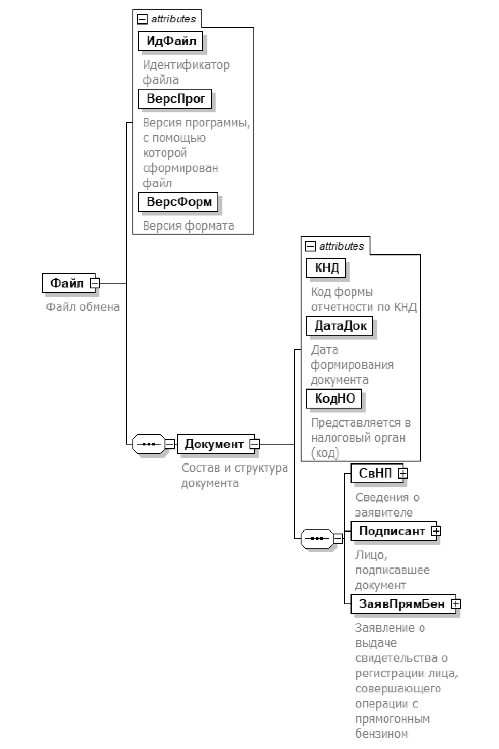 | Заявление о выдаче свидетельства о регистрации лица, совершающего операции с прямогонным бензином | ЗаявПрямБен | С | О | Состав элемента представлен в таблице 4.8 |