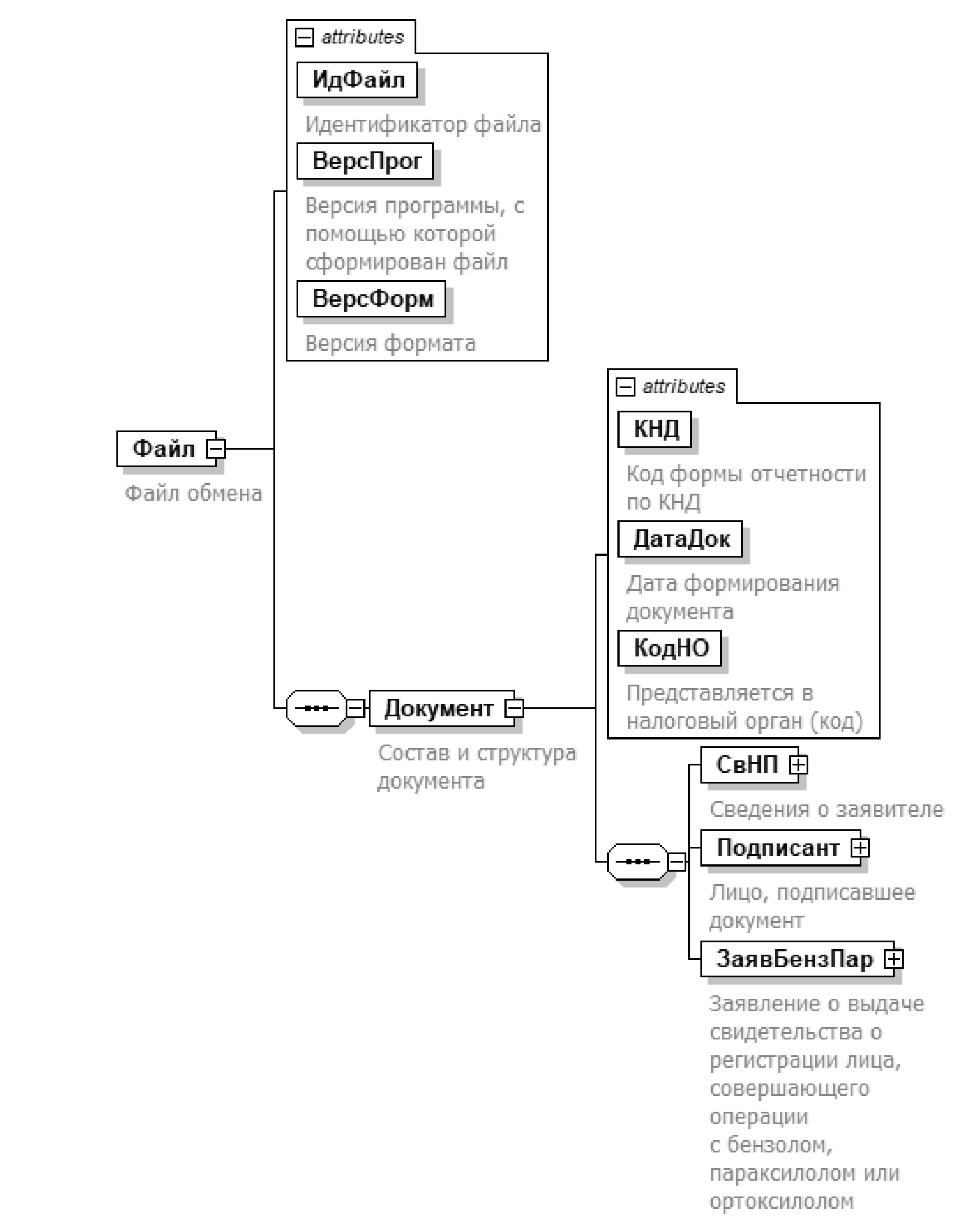 | Заявление о выдаче свидетельства о регистрации лица, совершающего операции с бензолом, параксилолом или ортоксилолом | ЗаявБензПар | С | О | Состав элемента представлен в таблице 4.8 |