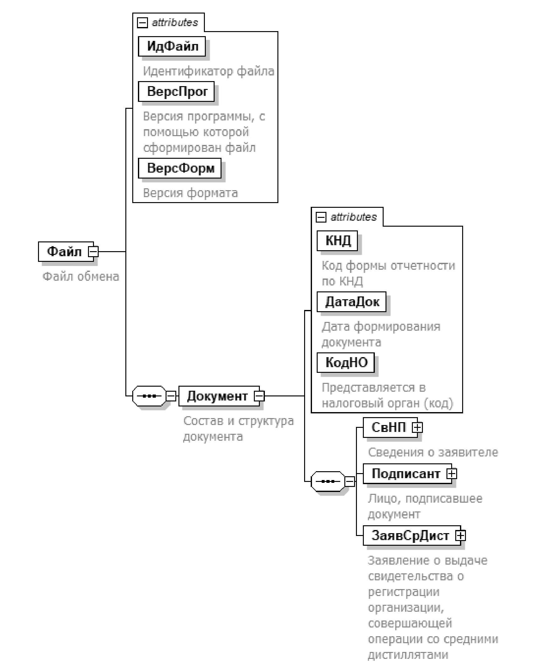 | Заявление о выдаче свидетельства о регистрации организации, совершающей операции со средними дистиллятами | ЗаявСрДист | С | О | Состав элемента представлен в таблице 4.7 |