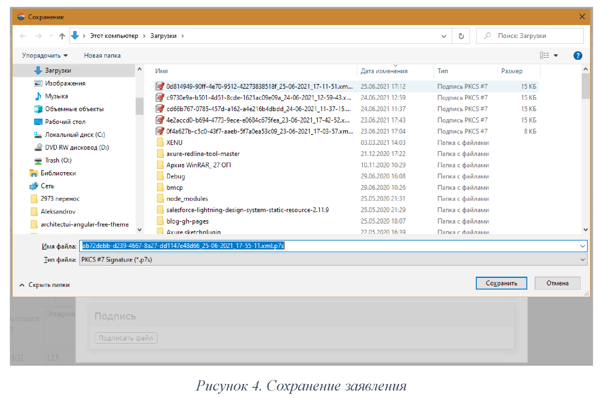 Затем необходимо сохранить подписанное заявление (Рисунок 4):