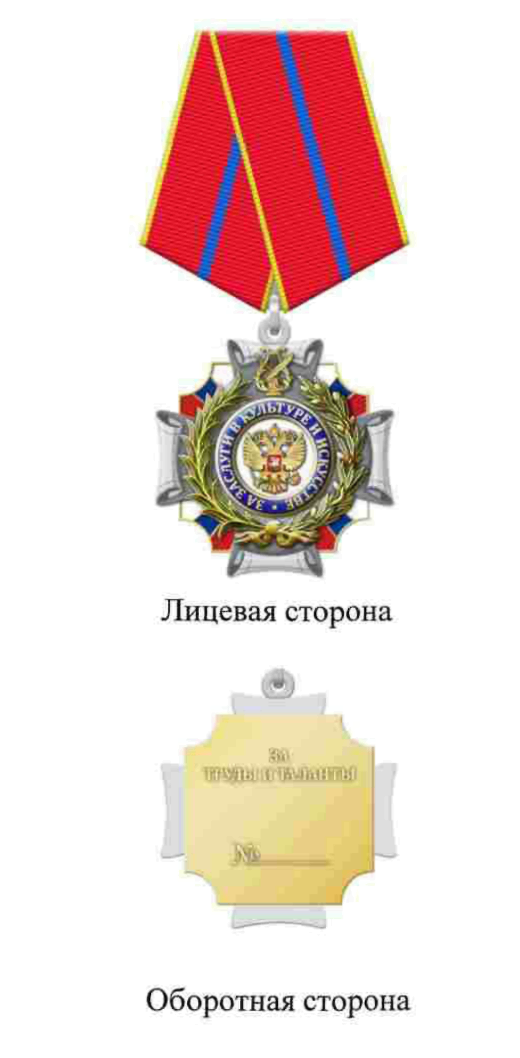 д) рисунок ордена "За заслуги в культуре и искусстве";