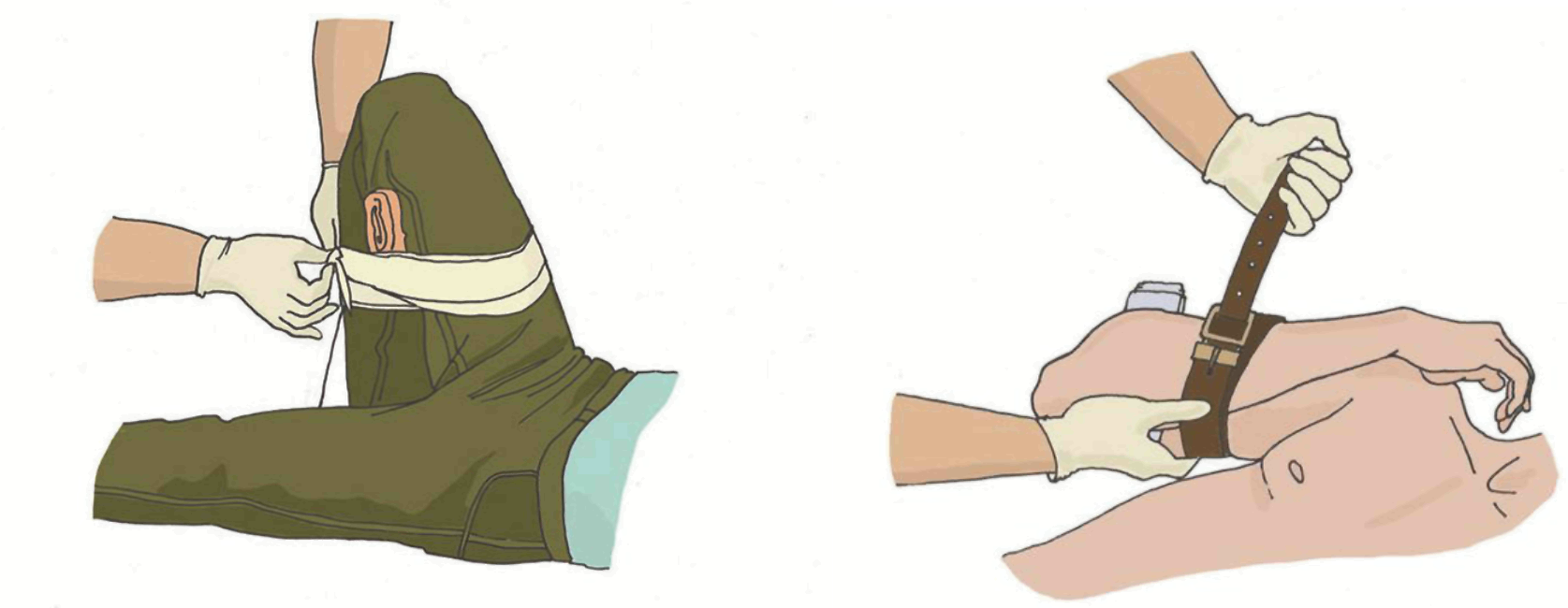 | 4. | Жгут кровоостанавливающий для остановки артериального кровотечения | Накладывайте на плечо или бедро при сильном артериальном кровотечении выше раны максимально близко к ней, поверх одежды или тканевой подкладки |