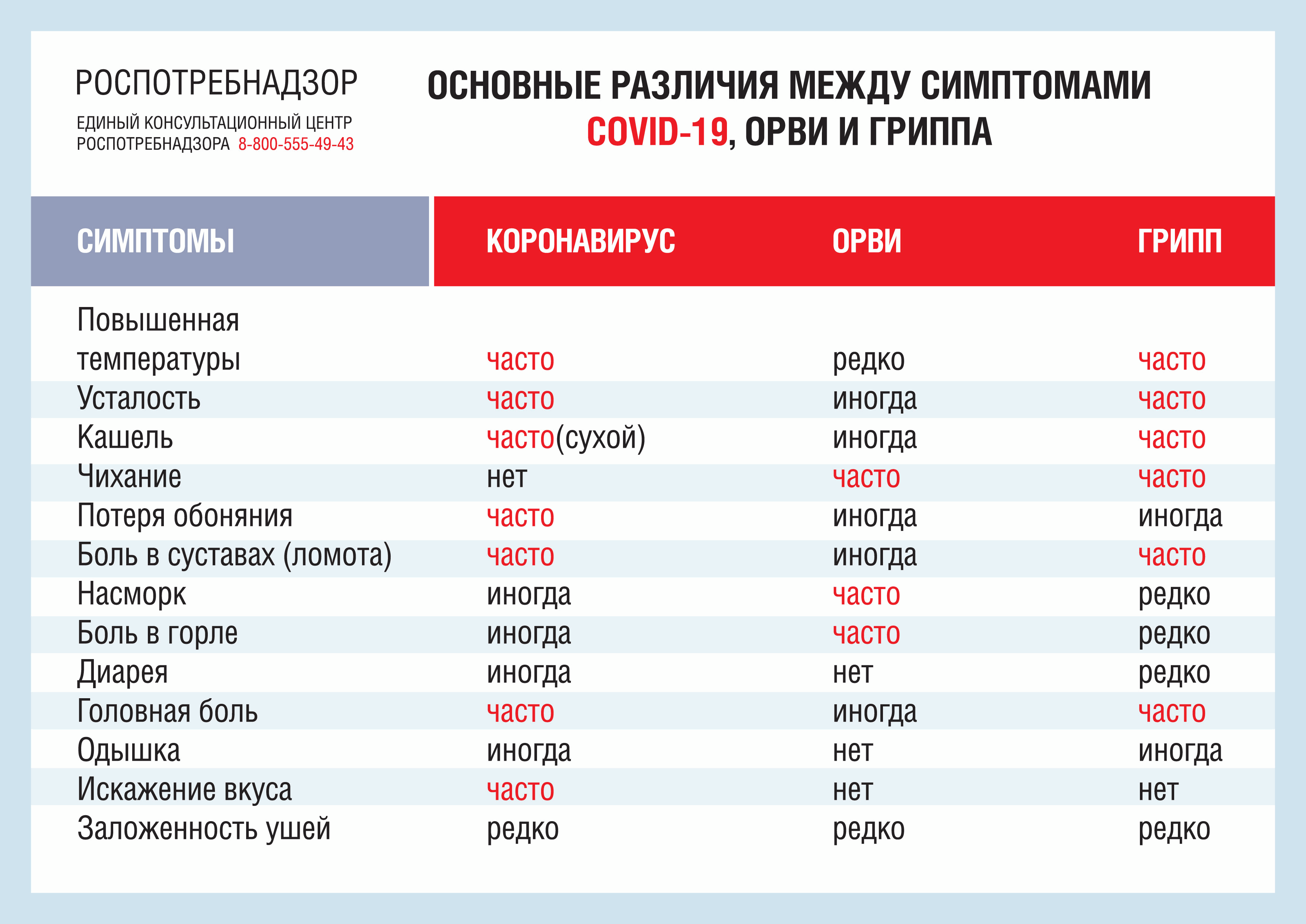 Информация Федеральной службы по надзору в сфере защиты прав потребителей и благополучия человека от 10 сентября 2021 г. "Об отличиях симптомов COVID-19 от симптомов ОРВИ и гриппа"