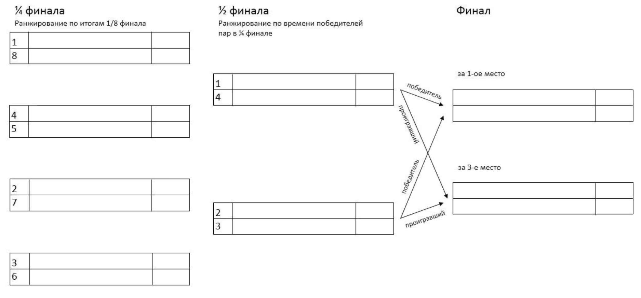 | Место | Часы | Минуты | Участник | Место | Часы | Минуты | Участник | ||