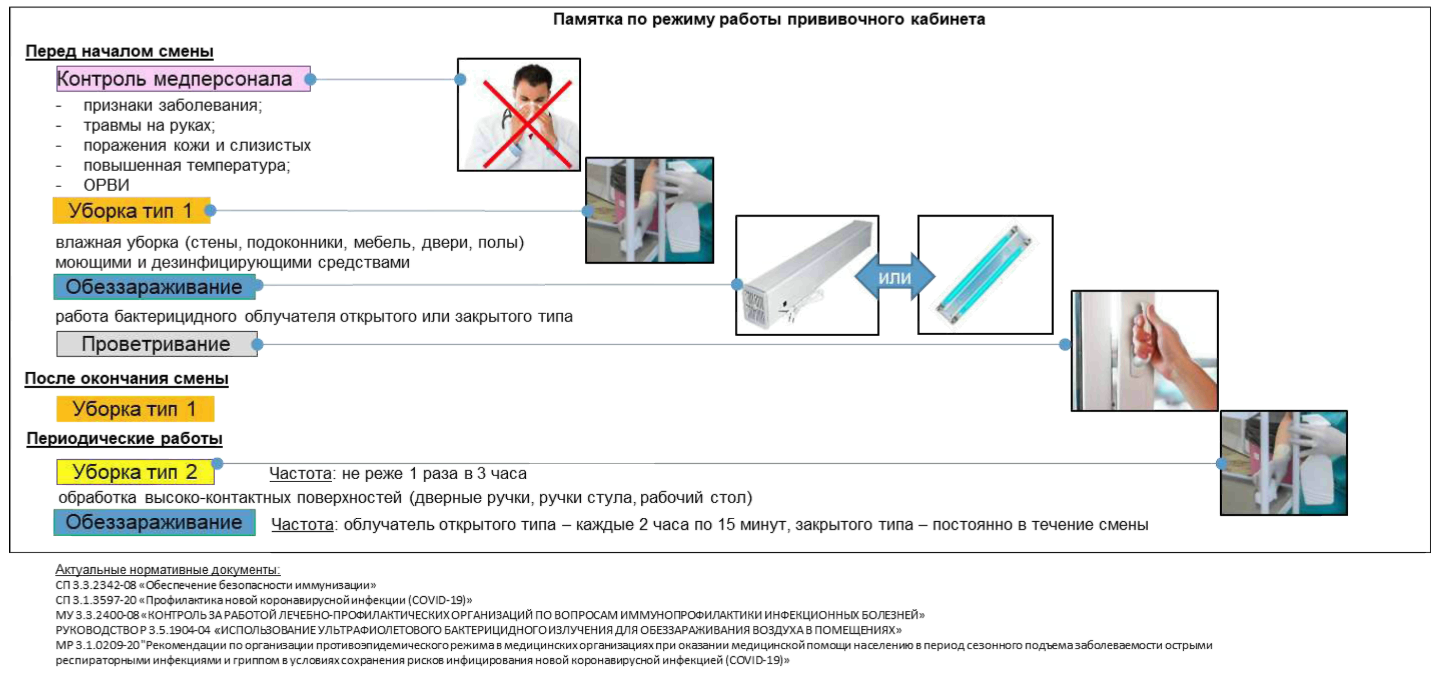 - в случае проведения вакцинации вне медицинской организации администрацией населенного пункта (муниципального образования") принимаются меры по подготовке места проведения вакцинации, отвечающего санитарно-эпидемиологическим требованиям и требованиям асептики, и созданию условий для наблюдения в течение 30 мин после проведения вакцинации;
