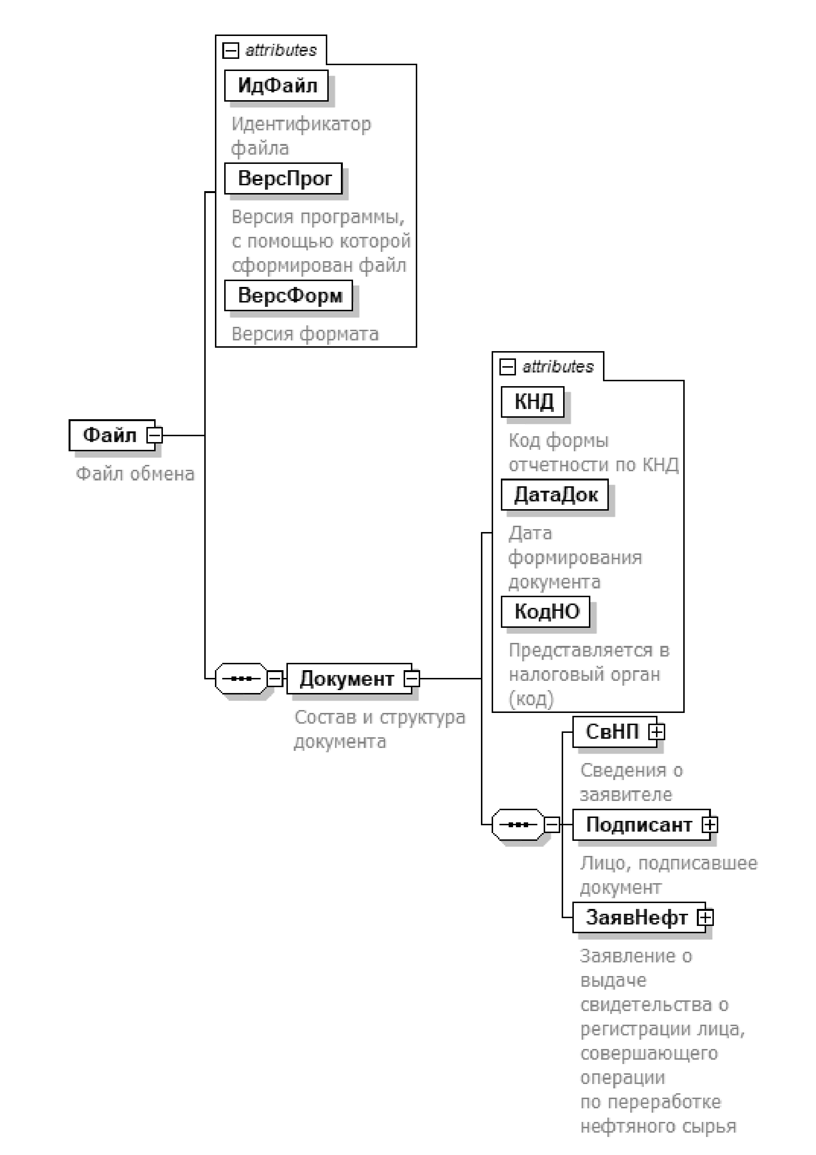 | Заявление о выдаче свидетельства о регистрации лица, совершающего операции по переработке нефтяного сырья | ЗаявНефт | С | О | Состав элемента представлен в таблице 4.7 |