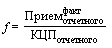 f - коэффициент по соответствующему уровню образования и форме обучения, отражающий соотношение численности фактического приема на обучение и КЦП в отчетном финансовом году, определяемый по формуле: