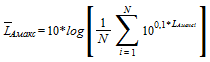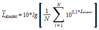 , дБА - наибольший корректированный по характеристике А уровень звука на характеристике шумомера S (медленно) на заданном временном интервале [8].