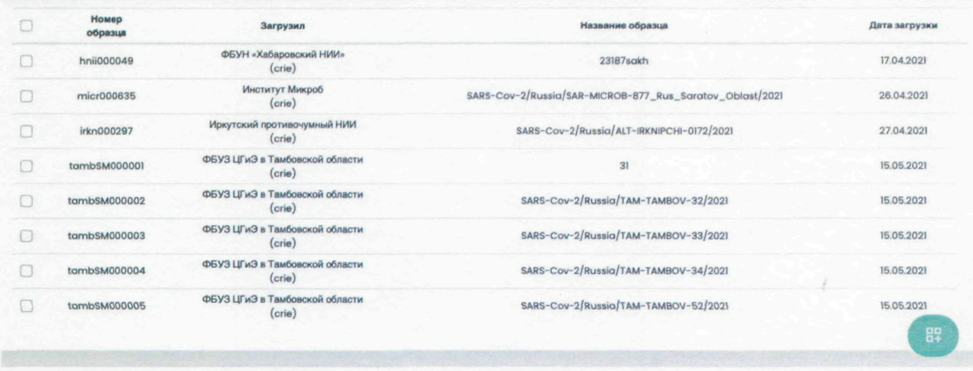 В данном разделе представлены все образцы с их статусами. По мере прохождения по процессу обработки образца статус будет изменяться.