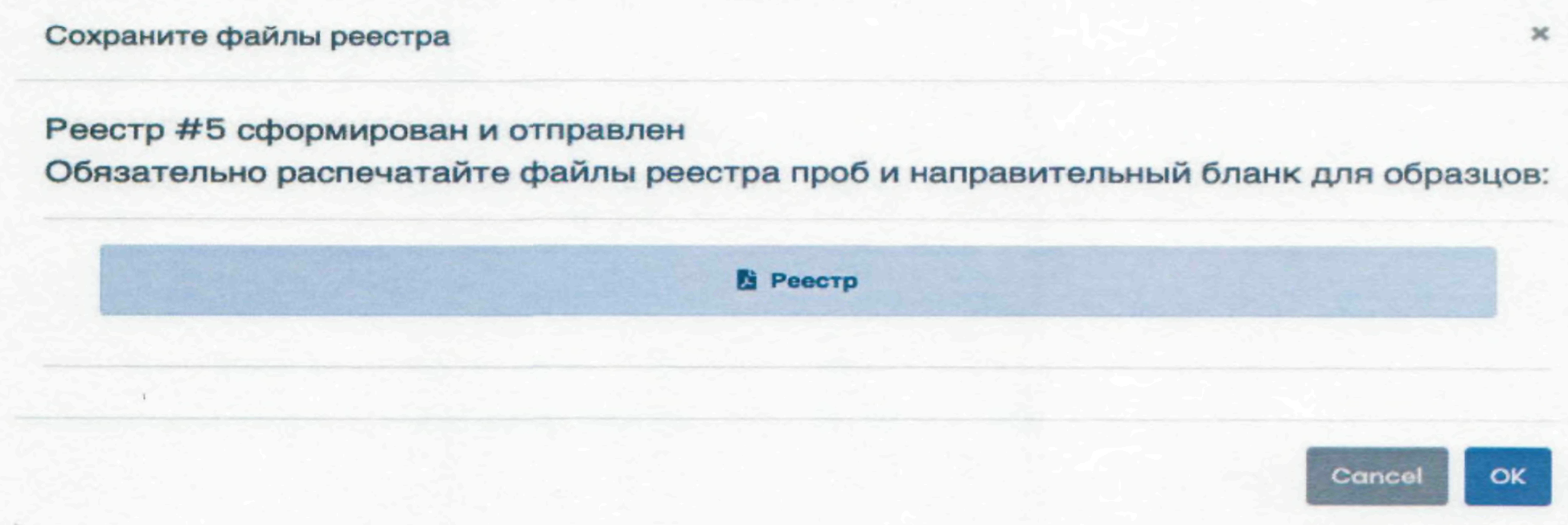 В нем можно выбрать все образцы, доступные для отправки посредством создания реестра.