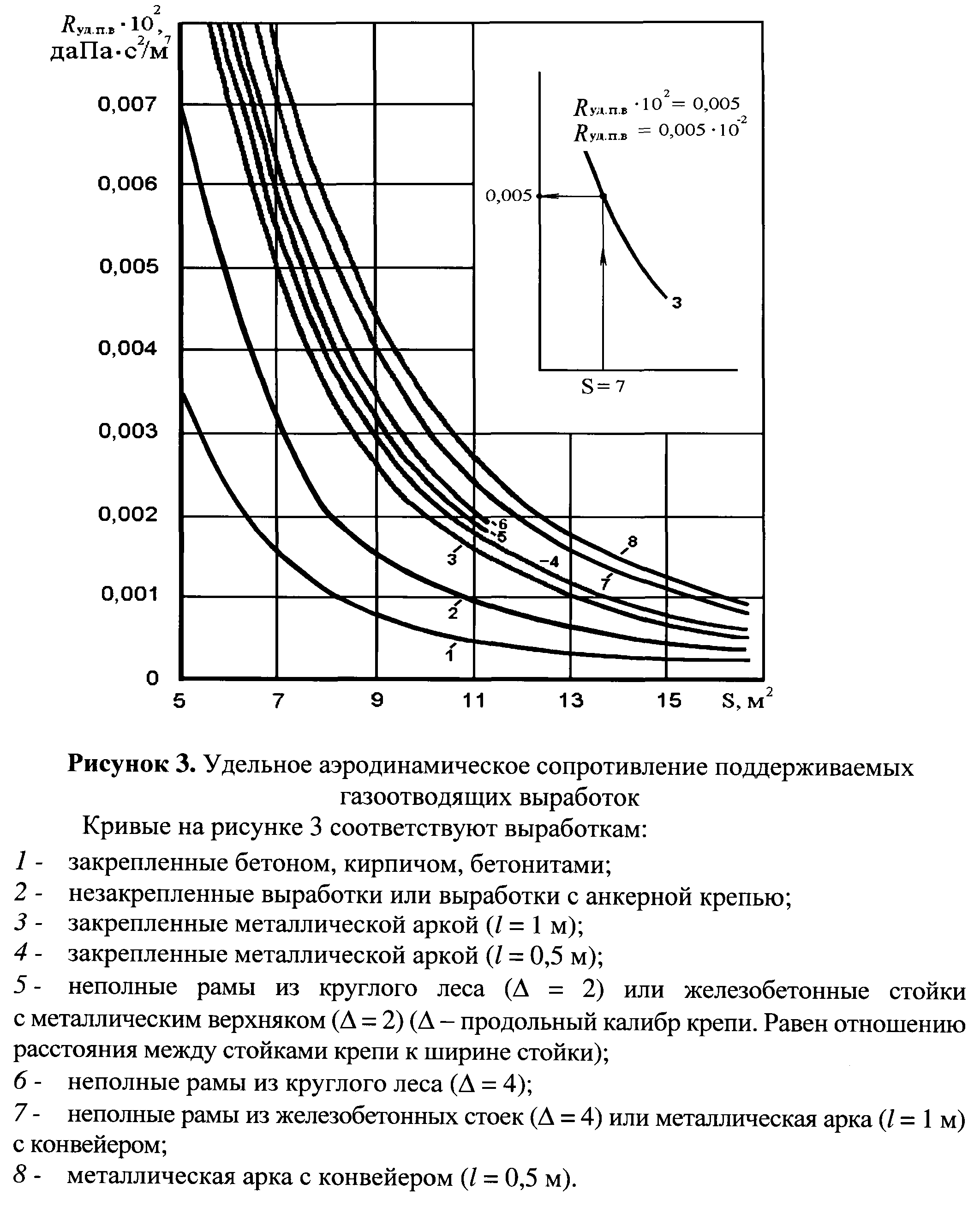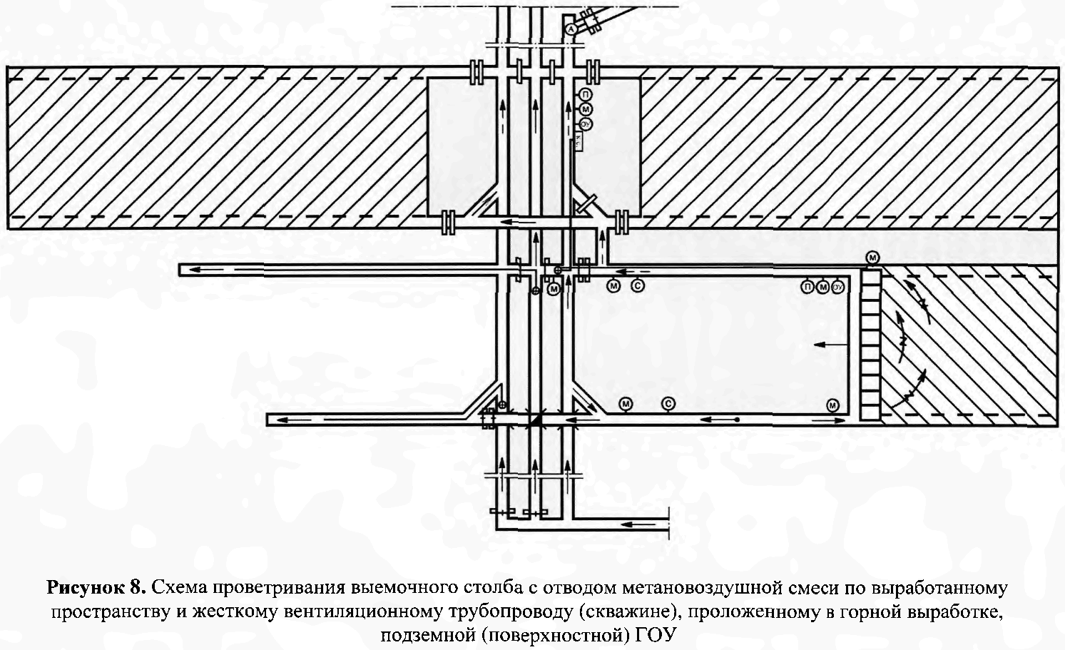 При расстоянии от места установки ВМП до устья подготовительной выработки менее 50 м и при отсутствии на данном участке выработки, в которой установлен ВМП, возможности выполнить замер расхода воздуха производительность ВМП принимается равной расходу воздуха, замеренном в подготовительной выработке на расстоянии 5-10 м от ее устья.