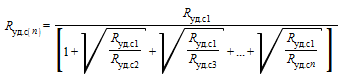при наличии разветвлений или слияний вентиляционных струй между крайними пунктами замеров определяется по формуле: