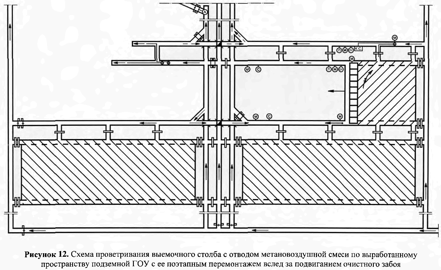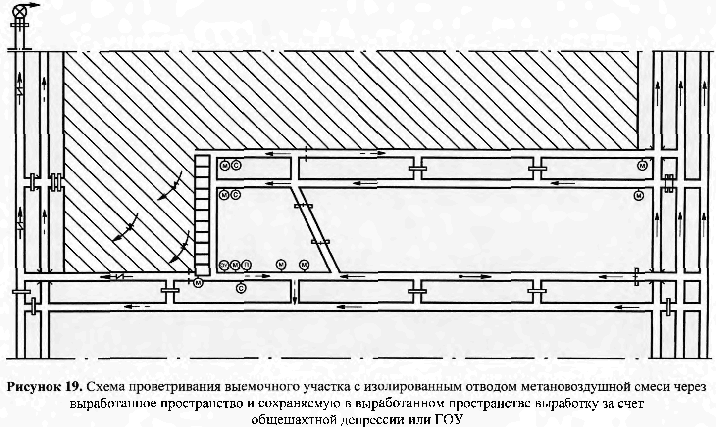 - порядок расчета расхода воздуха для проветривания выемочных участков;
