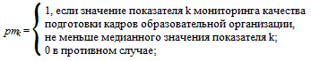 k - индекс показателя мониторинга качества подготовки кадров;