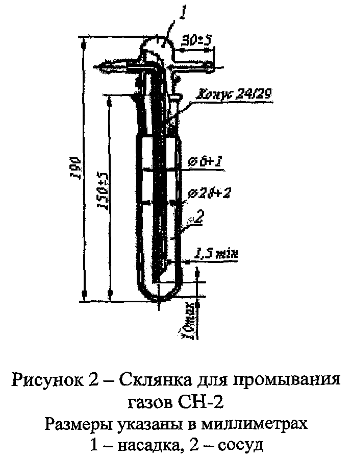 Определение проводят в склянке для промывания газов (рис. 1 или рис. 2).