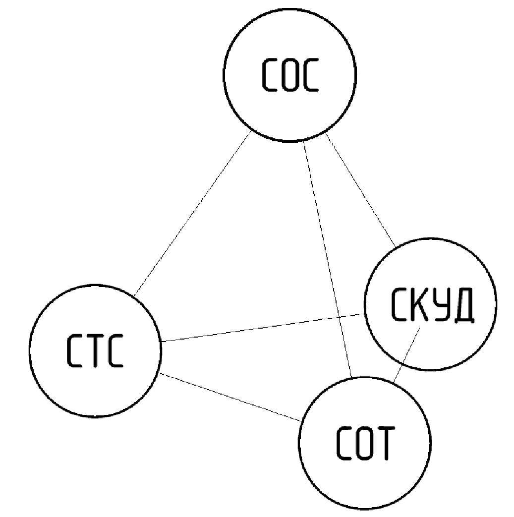 система охранной сигнализации; СОС - Совокупность совместно действующих технических средств охраны (безопасности), предназначенных для обнаружения криминальных угроз, сбора, обработки, передачи и представления в заданном виде информации о состоянии охраняемого объекта или имущества
