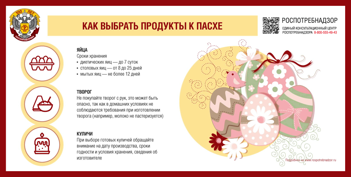 Информация Федеральной службы по надзору в сфере защиты прав потребителей и благополучия человека от 19 апреля 2022 г. "О рекомендациях как выбрать продукты к Пасхе"