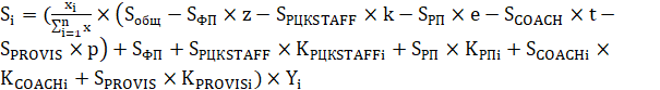 - плановая численность дополнительно привлеченных сотрудников регионального центра компетенций i-го субъекта Российской Федерации, необходимых для реализации проектов на предприятиях - участниках национального проекта, рассчитываемая пропорционально установленному федеральным проектом субъекту Российской Федерации в следующем финансовом году показателю количества предприятий, внедряющих мероприятия национального проекта под региональным управлением (с региональным центром компетенций);