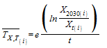 t - количество лет планового периода, которое определяется в зависимости от среднегодового темпа изменения уровня бедности в субъекте Российской Федерации
