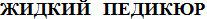 Словесные элементы "Жидкий педикюр" применяются в отношении педикюра с использованием жидкого средства на основе фруктовых кислот. Главная особенность использования в данной процедуре фруктовых кислот - это абсолютная безопасность для не омертвевшей здоровой кожи. Средство оказывает воздействие только на ороговевшие участки. Жидкий педикюр подойдет тем, кто желает избавиться от таких проблем, как: грубый эпидермис; мозоли; натоптыши; вросшие ногти; грибок; повышенное потоотделение стоп (гипергидроз); гиперкератоз (повышенная скорость деления клеток рогового слоя, чрезмерно утолщенный эпидермис); диабетическая кожа.
