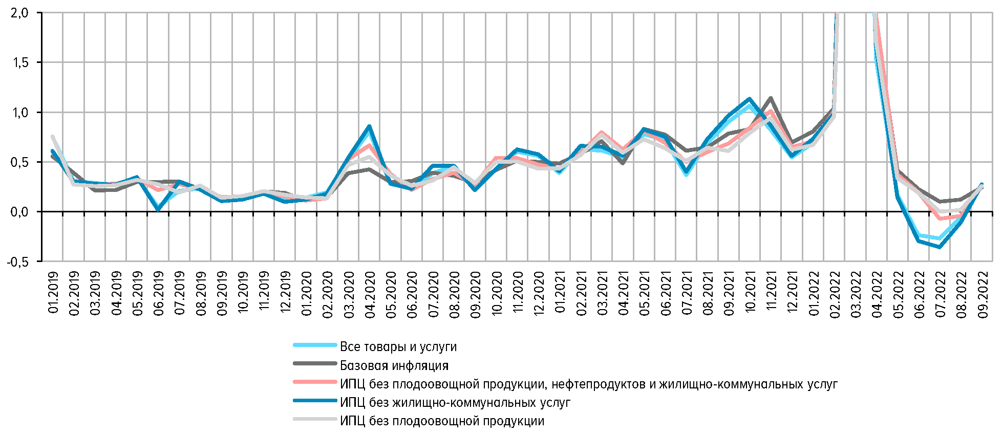 В 2022 году в результате введенных санкций ожидается сокращение совокупного выпуска. Часть этого спада придется на снижение потенциального выпуска. Неопределенность относительного масштаба снижения потенциала, а также эффективности начавшихся процессов структурной перестройки потребует дополнительной осторожности при реализации денежно-кредитной политики.