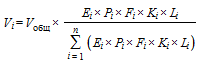 V - общий объем бюджетных ассигнований, предусмотренный в федеральном бюджете на предоставление субсидий на соответствующий финансовый год, тыс. рублей;
