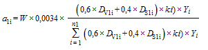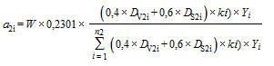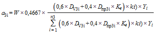 - доля i-го субъекта Российской Федерации в показателе размера посевных площадей с учетом интенсивности страхования посевных площадей;