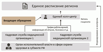Структурами, обеспечивающими прозрачное и доступное формирование расписания и записи на прием в медицинские организации, являются колл-центры и региональный проектный офис (координационный центр). Эти структуры могут быть реализованы как на функциональной основе (например, на базе медицинских информационно-аналитических центров), так и в рамках создания единого центра, реализующего функционал регистратуры по обработке входящих обращений для всех медицинских организаций субъекта.