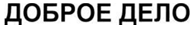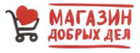 представляет собой комбинированное обозначение, состоит из стилизованного изображения продуктовой корзины с изображением сердца внутри нее, словесных элементов "МАГАЗИН", "ДОБРЫХ ДЕЛ" в две строки и горизонтальных линий сверху и снизу словесных элементов обозначения. Словесные элементы выполнены оригинальным шрифтом буквами русского алфавита красного цвета.