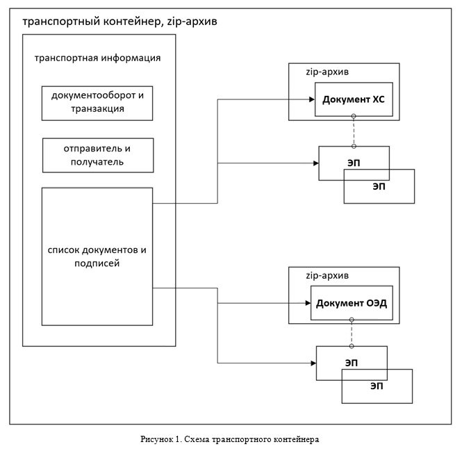 3.1.3. В одном транспортном контейнере передаются документы и ЭП, относящиеся к одной транзакции.