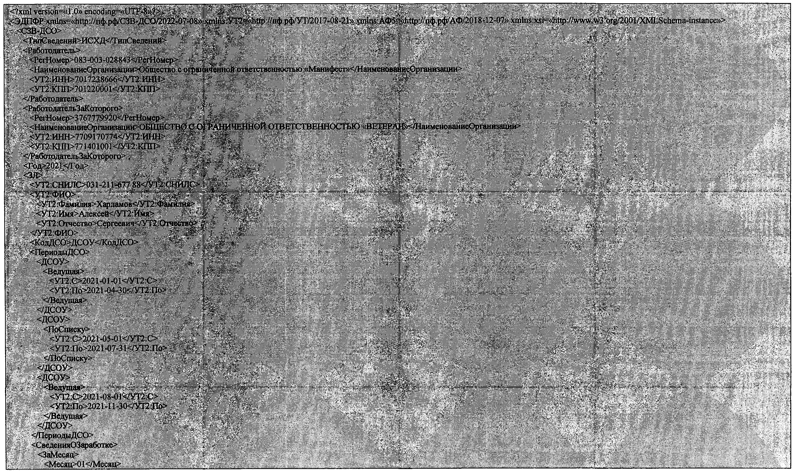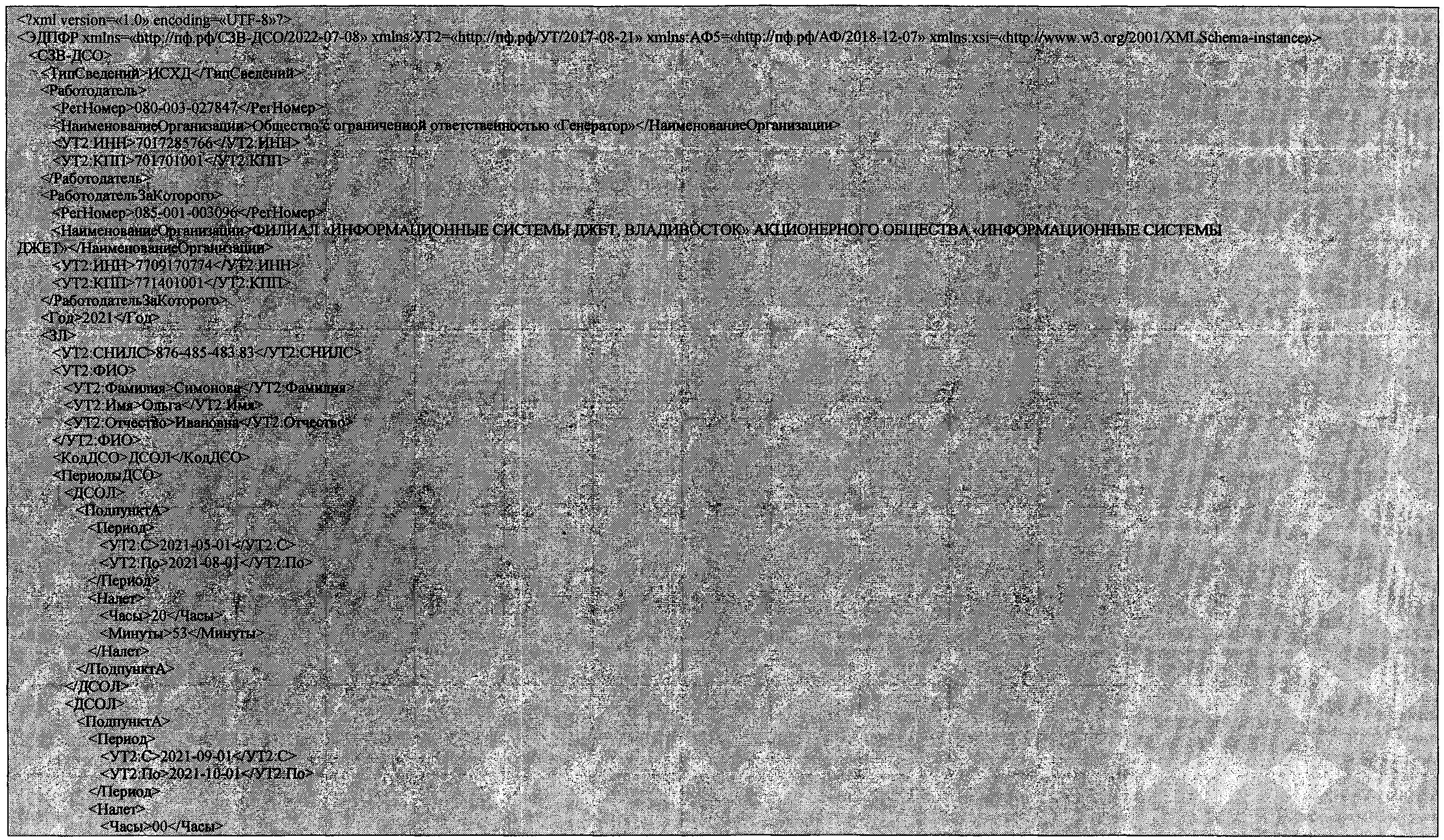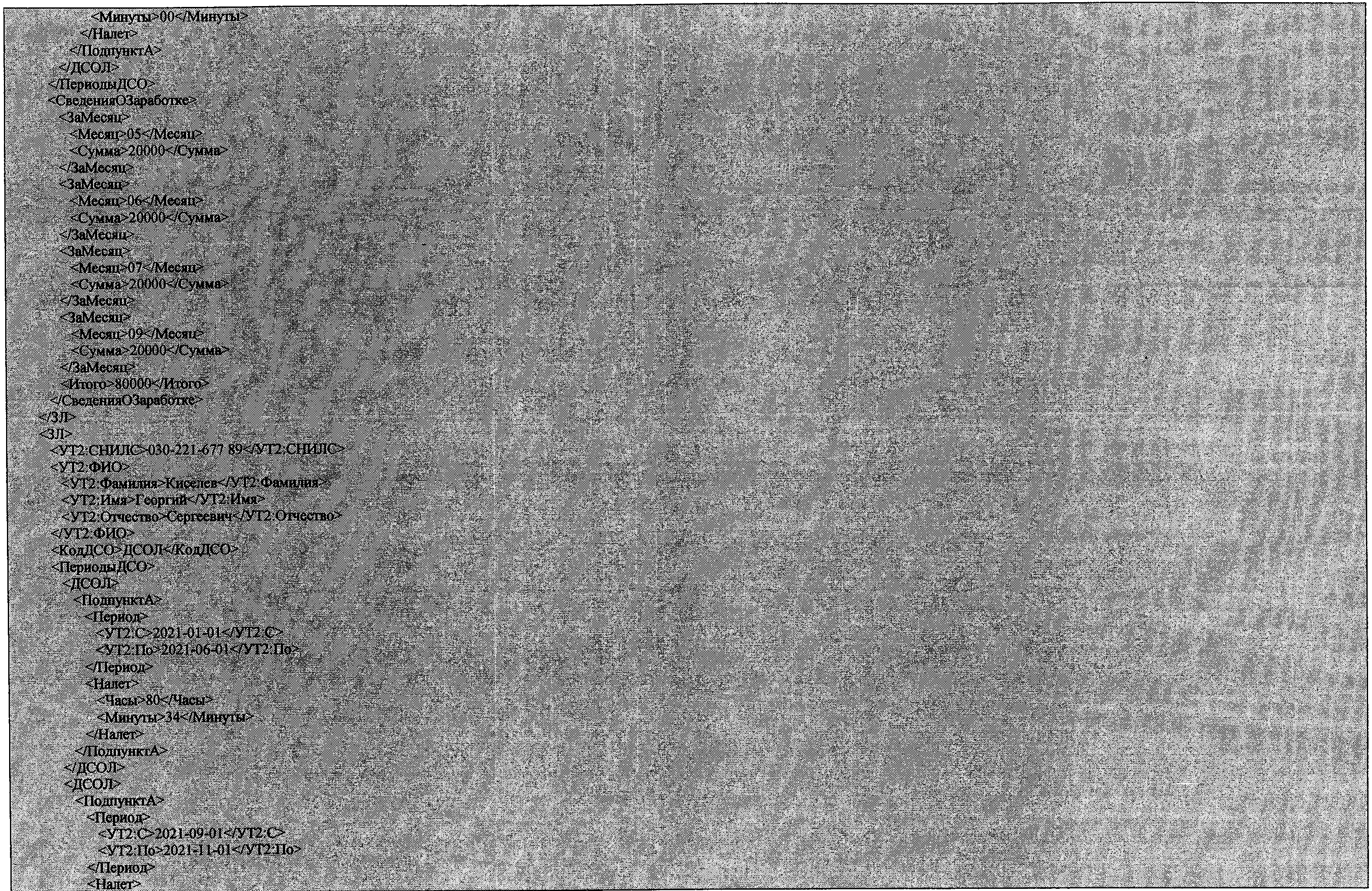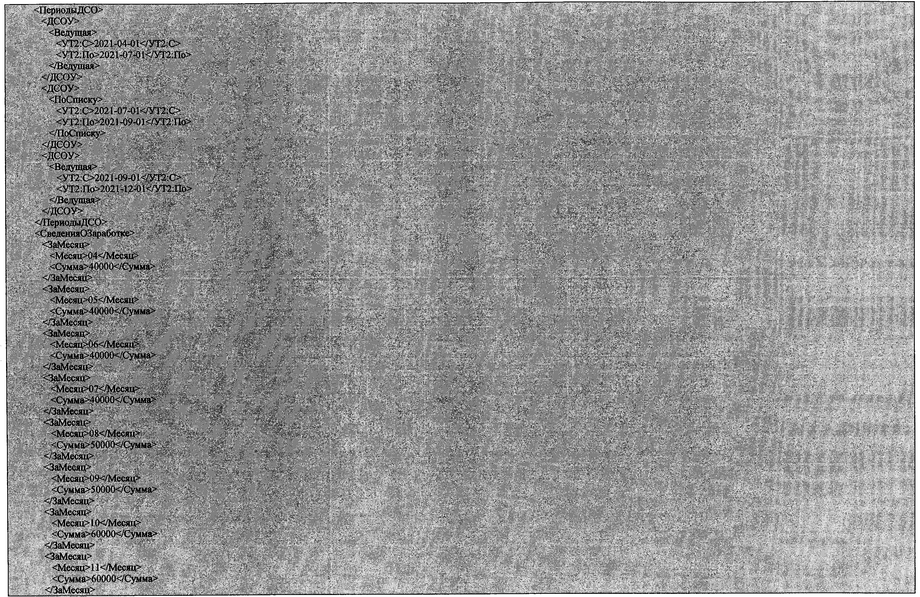 Сведения о периодах работы, дающей право на ежемесячную доплату к пенсии, и сумме заработка, из которого исчисляется размер ежемесячной доплаты к пенсии застрахованного лица. Пример 2