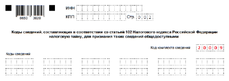 5. На странице «Коды сведений, составляющих в соответствии со статьёй 102 Налогового кодекса Российской Федерации налоговую тайну, для признания таких сведений общедоступными» в поле «Код комплекта сведений» должно быть указано значение «20009»