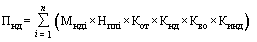 Сумма платежа за выбросы загрязняющих веществ, определенная суммарно по всем загрязняющим веществам исходя из значений объема или массы выбросов загрязняющих веществ, равных значениям нормативов допустимых выбросов на текущий отчетный период, умноженных на соответствующие ставки платы (Пндв), определяется по формуле:
