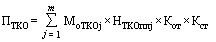 ПТКО - сумма платежа за размещение твердых коммунальных отходов, определенная региональными операторами по обращению с твердыми коммунальными отходами, операторами по обращению с твердыми коммунальными отходами исходя из объема или массы размещенных твердых коммунальных отходов, определенных по результатам производственного экологического контроля в предыдущем квартале, рублей.