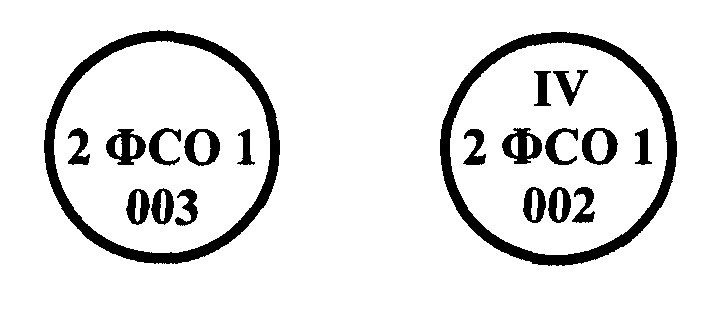 Оттиск наносится с помощью спецустройства и имеет форму окружности, наклейка имеет форму прямоугольника, разделенного по вертикали на три поля.