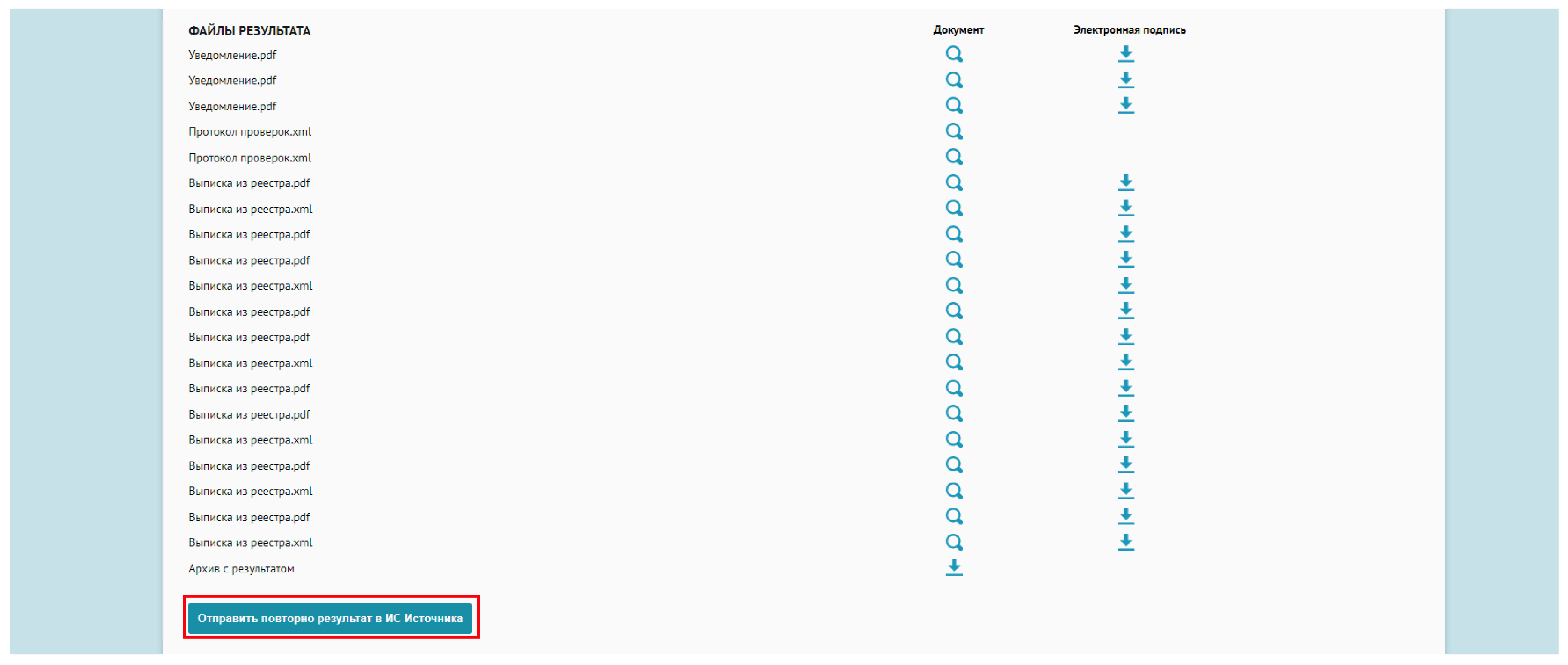 повторное направление удостоверяющей выписки из Единого государственного реестра недвижимости в систему - источник поступления заявления.