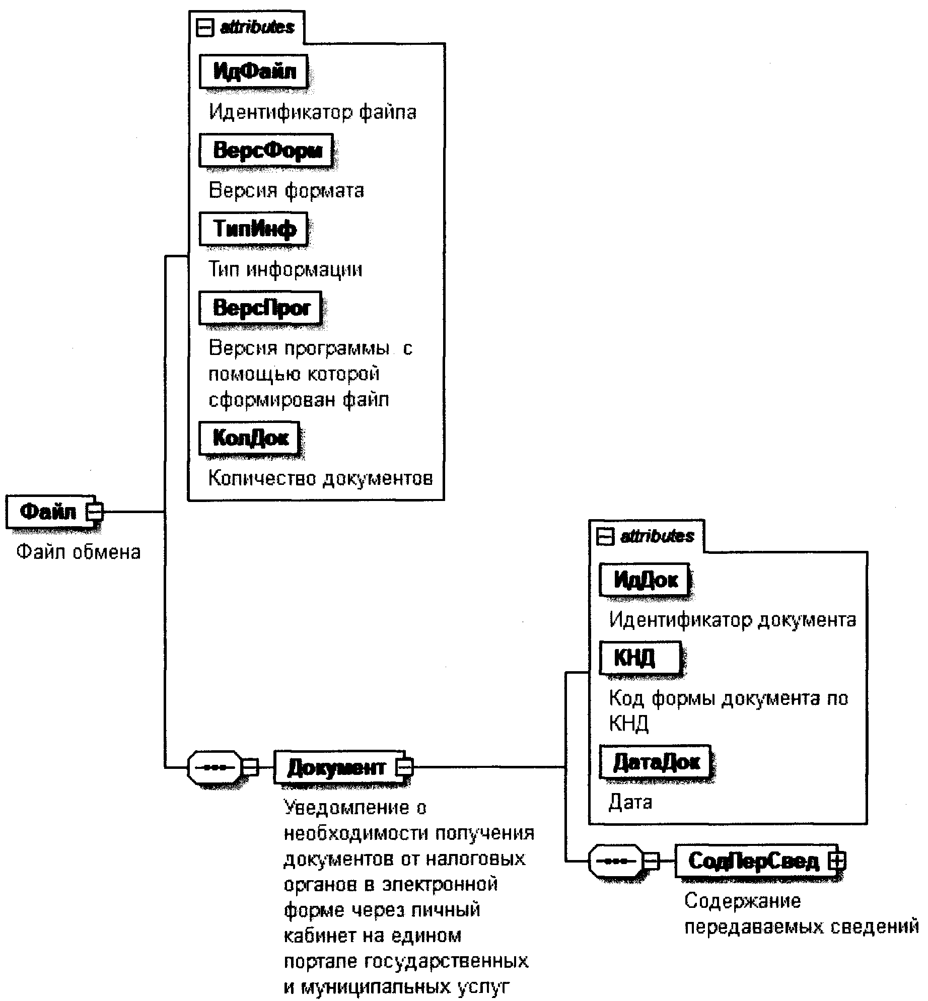 1. Настоящий формат описывает требования к XML-файлам (далее - файл обмена) передачи уведомления о необходимости получения документов от налоговых органов в электронной форме через личный кабинет на едином портале государственных и муниципальных услуг в электронной форме.