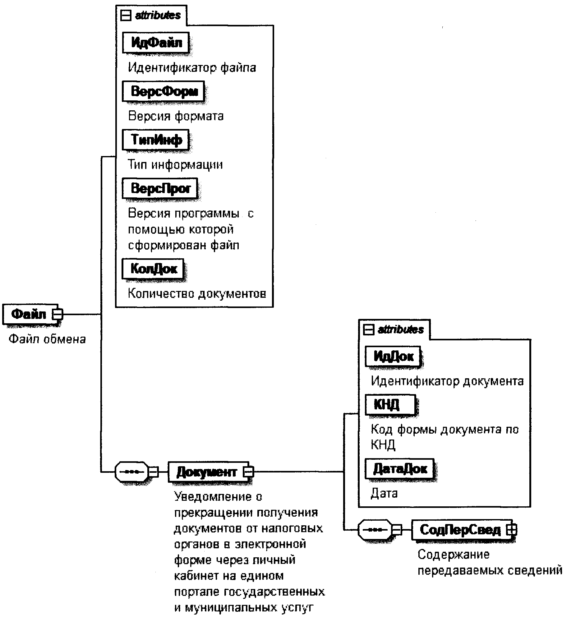 1. Настоящий формат описывает требования к XML-файлам (далее - файл обмена) передачи уведомления о прекращении получения документов от налоговых органов в электронной форме через личный кабинет на едином портале государственных и муниципальных услуг в электронной форме.