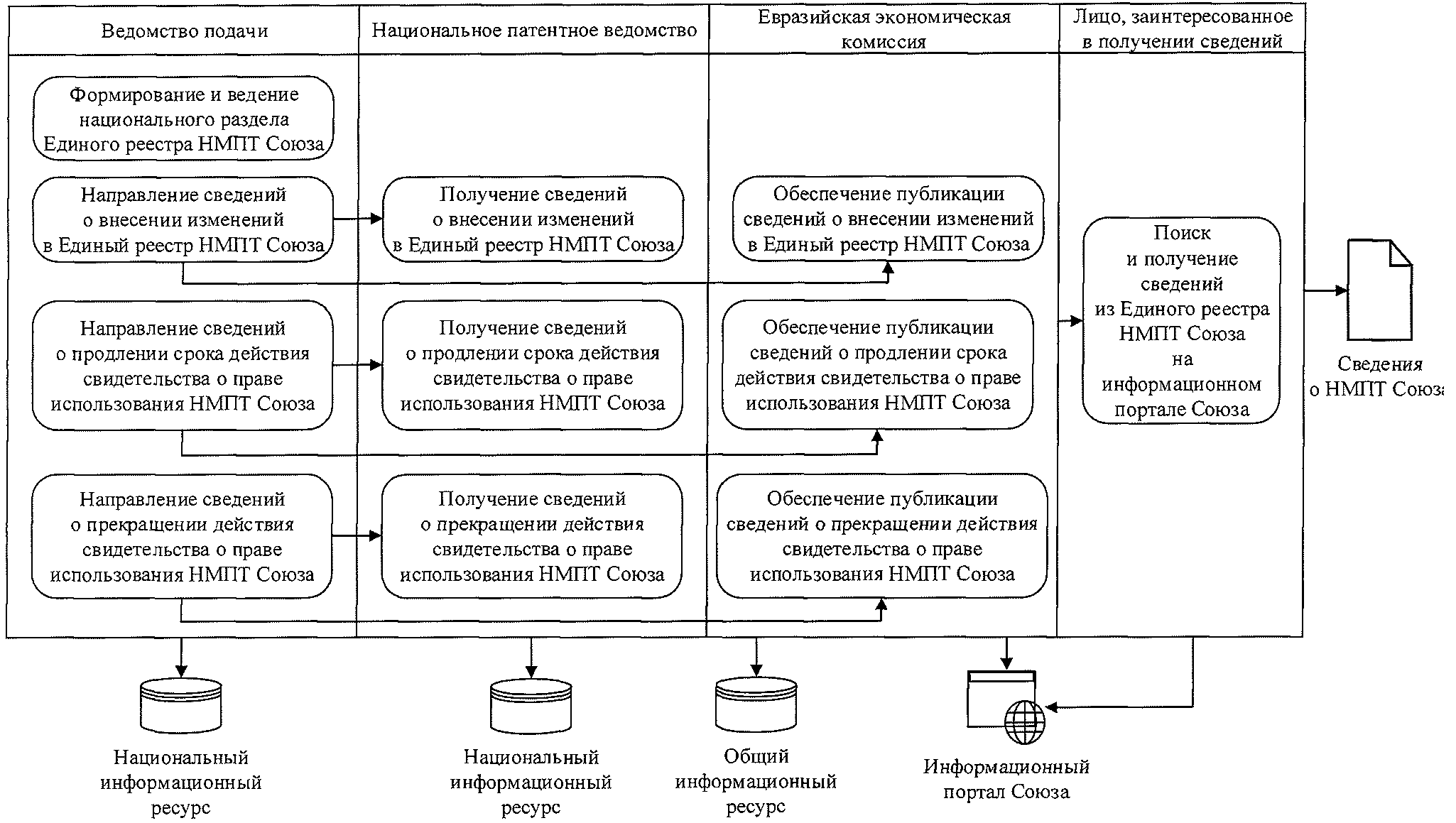 сведений, содержащихся в заявке, ходатайстве, используемых при информационном взаимодействии между ведомствами подачи и национальными патентными ведомствами, между ведомством подачи и Евразийской экономической комиссией, между национальными патентными ведомствами и Евразийской экономической комиссией при прохождении процедур регистрации и (или) предоставления права использования наименования места происхождения товара Союза (далее - НМПТ Союза) в Едином реестре НМПТ Союза или при выдаче свидетельства о праве использования НМПТ Союза в отношении наименования места происхождения товара, зарегистрированного до вступления в силу Договора о товарных знаках