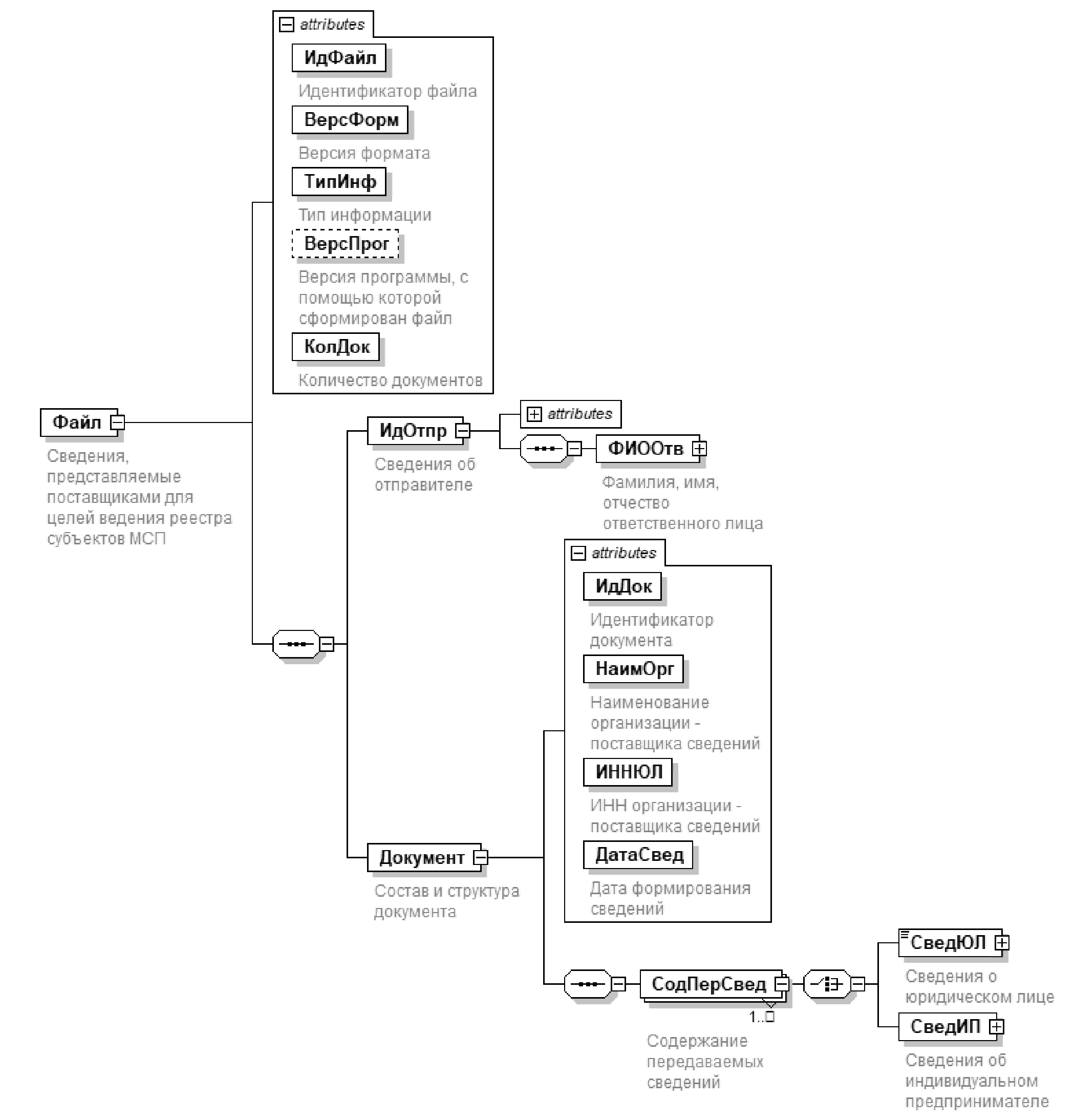 1. Настоящий формат описывает требования к XML файлам передачи сведений в электронной форме (далее - файл обмена) в ФНС России лицами, определенными пунктом 2 статьи 6 Федерального закона от 29 декабря 2015 г. N 408-ФЗ, (далее - поставщики) с целью формирования Единого реестра субъектов малого и среднего предпринимательства (МСП).