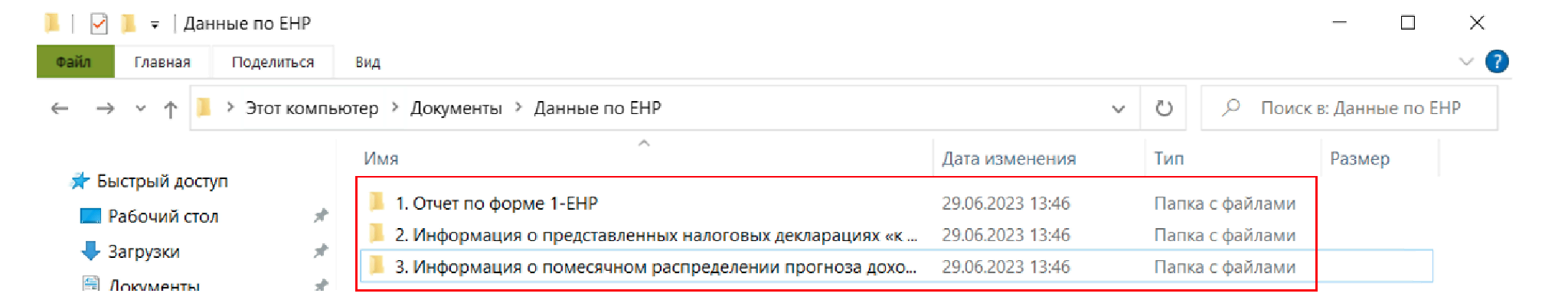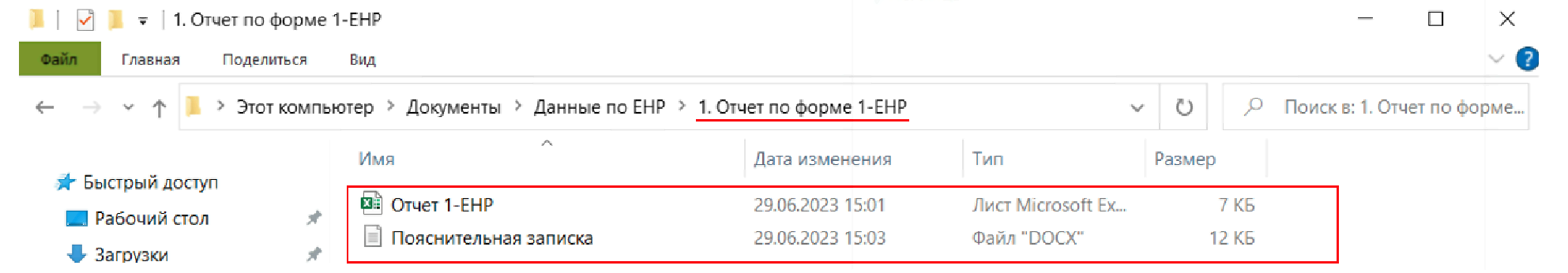 1.1 В папке "Отчет по форме 1-ЕНР" должны лежать 2 файла, а именно: