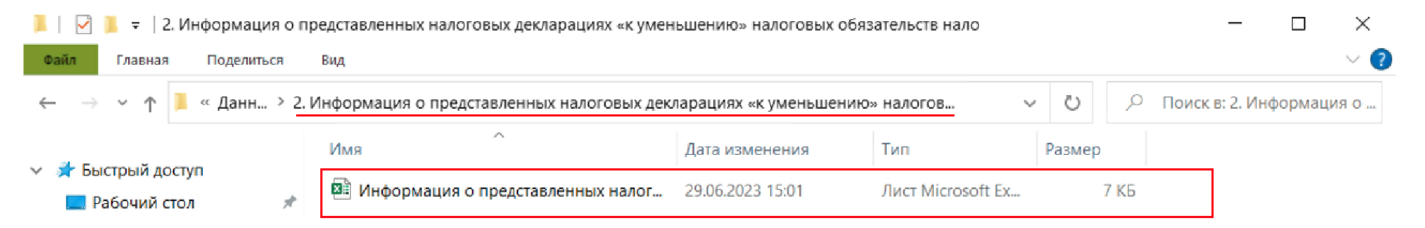 - Информация о представленных налоговых декларациях к уменьшению в формате .xls или .xlsx (наименование файла не имеет значения)