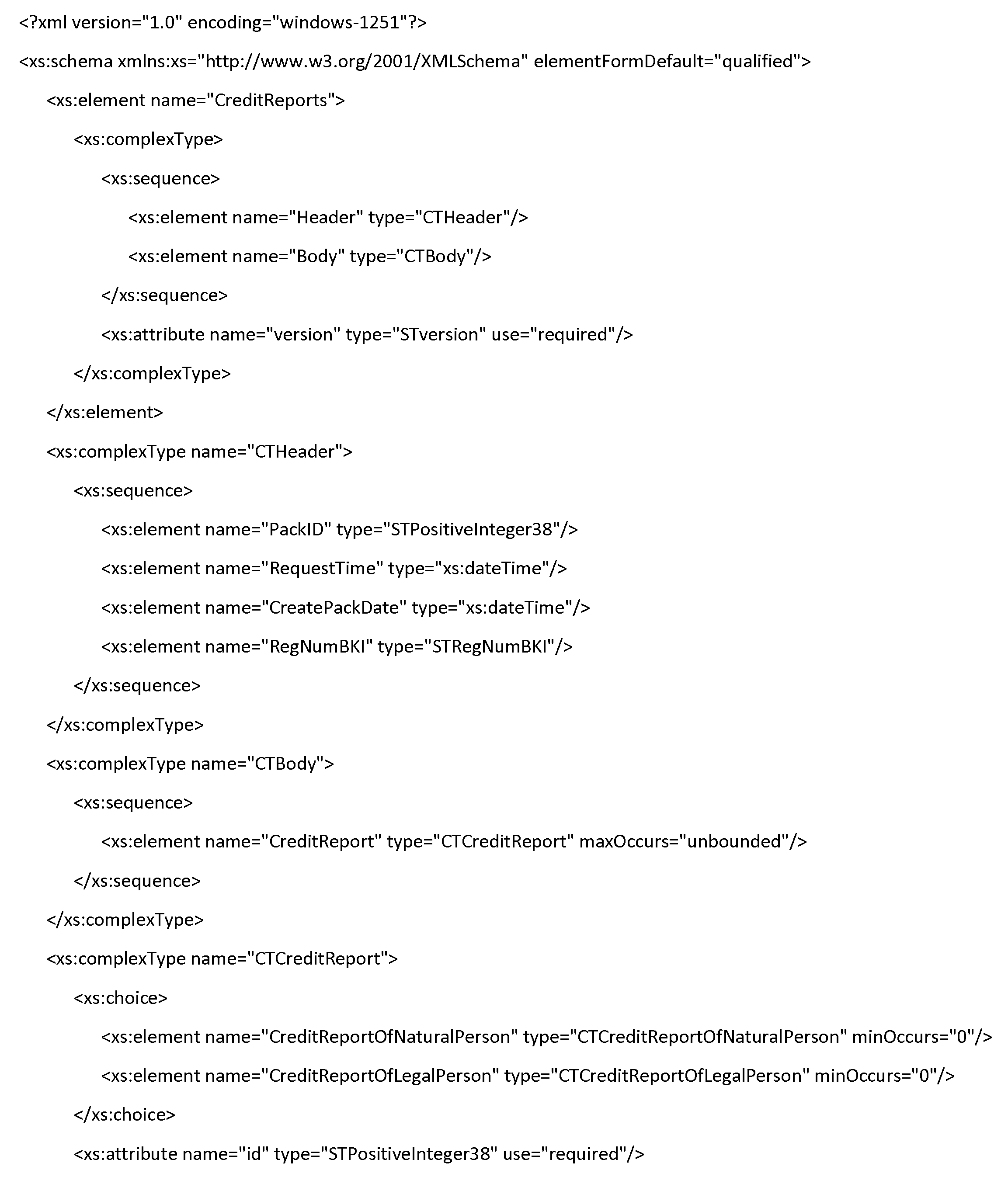 Документ подразделяется на две обязательные части - заголовок файла (Header) и кредитный отчет (Body).