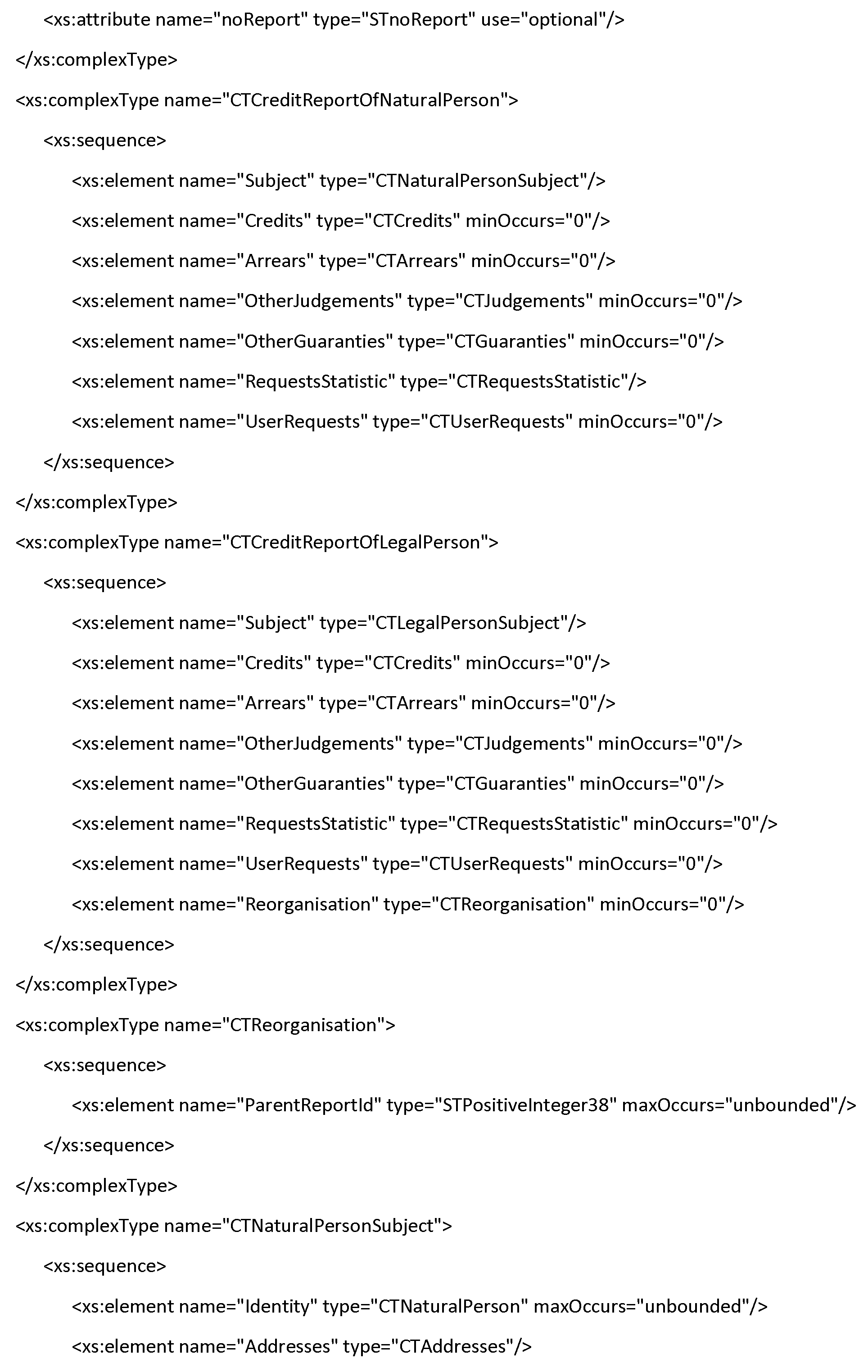 | 13 | CreditReport | noReport | Изменен тип с "positiveInteger" на "integer". Установлено минимальное и максимальное значение. |