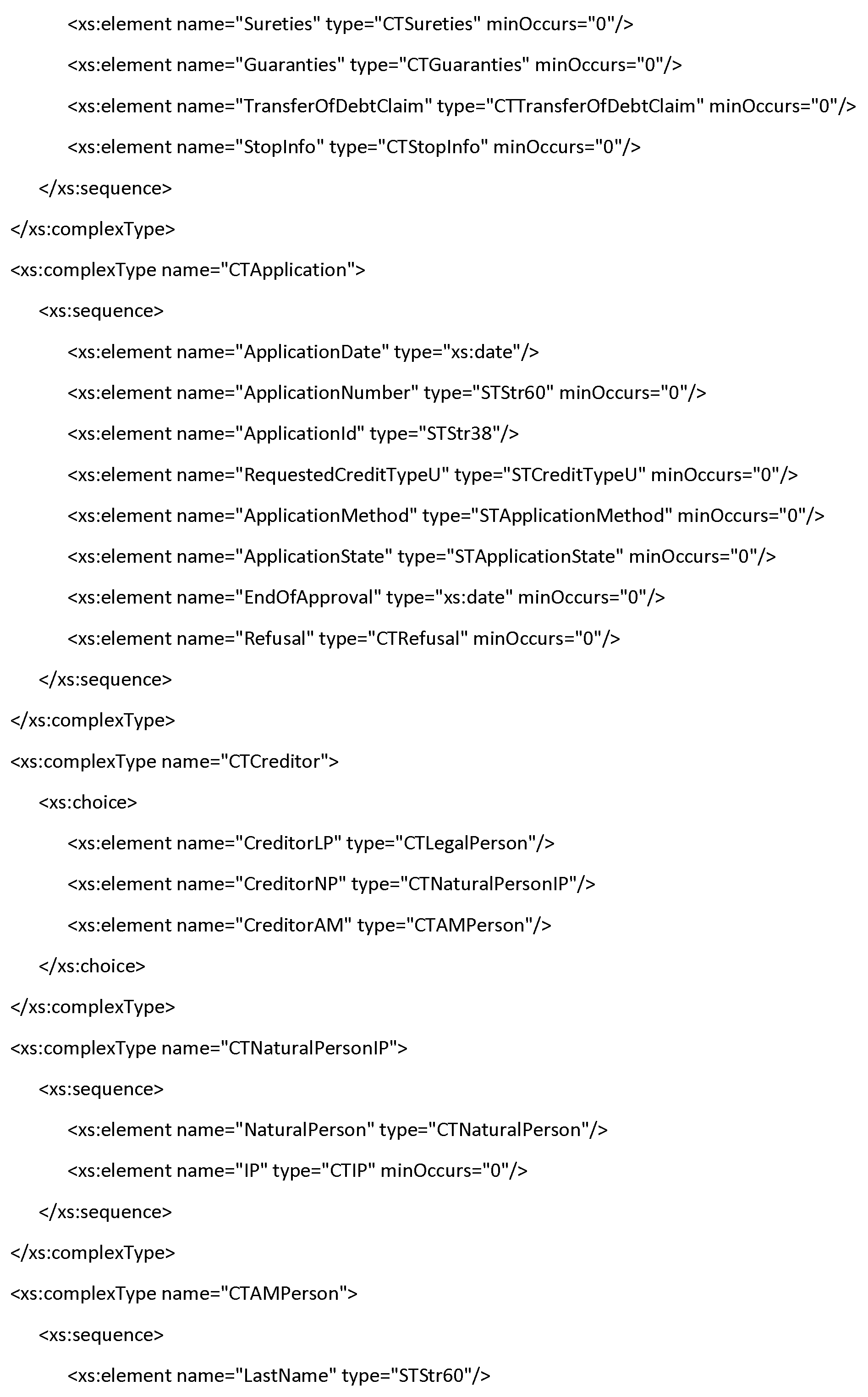 | Surety | Информация о поручительстве, обеспечивающем обязательство. Элемент заполняется для записи кредитной истории поручителя, заемщика (лизингополучателя) при наличии поручительства по обязательству. | Составной тип Таблица Ф.27 | Да |