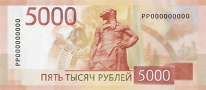 Пятитысячная банкнота посвящена Екатеринбургу и Уральскому федеральному округу. Основное изображение лицевой стороны - стела "Европа-Азия", на оборотной стороне представлены памятник "Сказ об Урале" в Челябинске, стела "66-параллель" (Полярный круг) в Салехарде.
