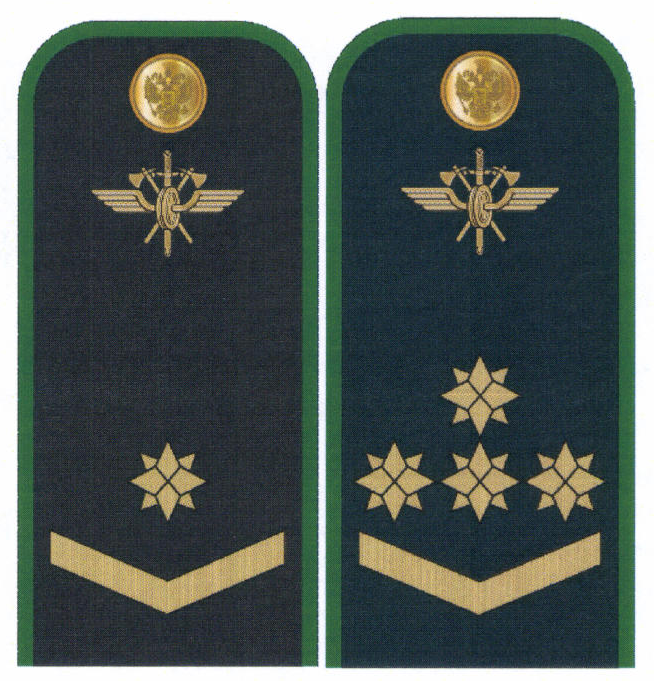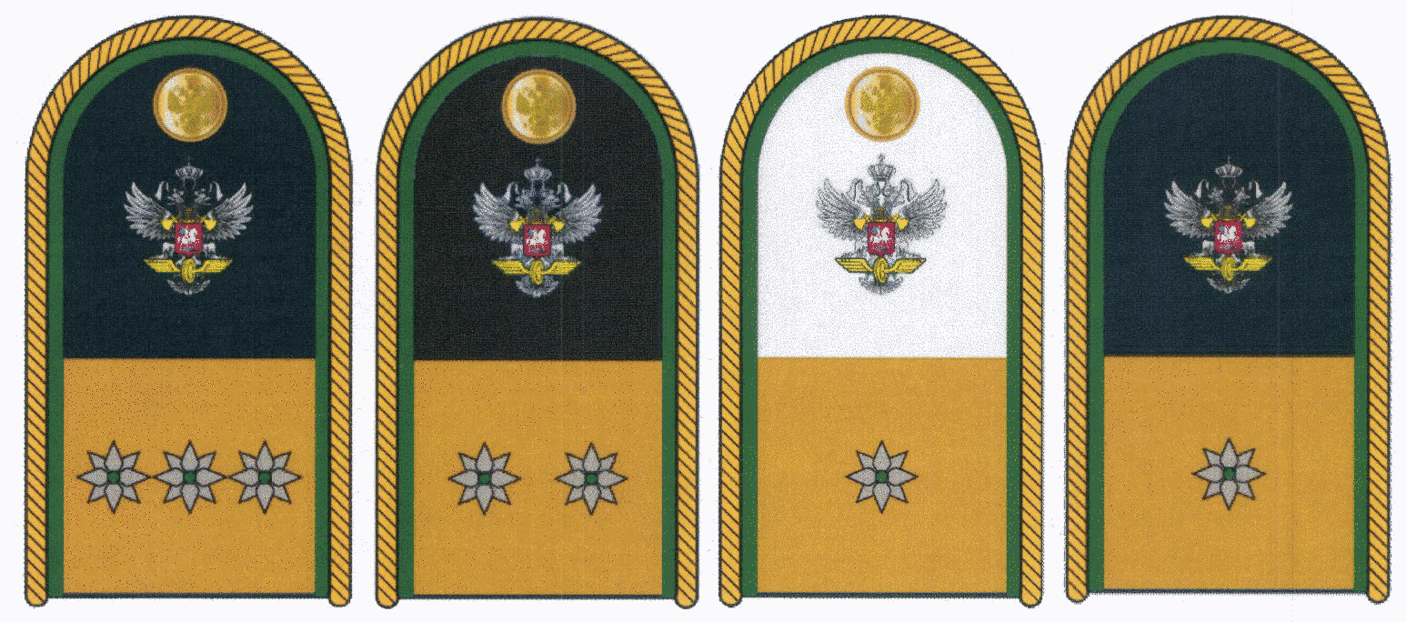 наплечные накладки съемные темно-синего цвета для старшего или среднего составов (с учетом ранга) либо младшего состава. Крепятся на одну пуговицу для форменной одежды (малую);