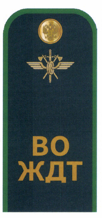 нарукавный знак федерального государственного предприятия "Ведомственная охрана железнодорожного транспорта Российской Федерации" (далее - ФГП ВО ЖДТ России), вышитый шелковой нитью. Нашивается на внешней стороне левого рукава на расстоянии 80 мм от верхней точки рукава до верхней границы знака.