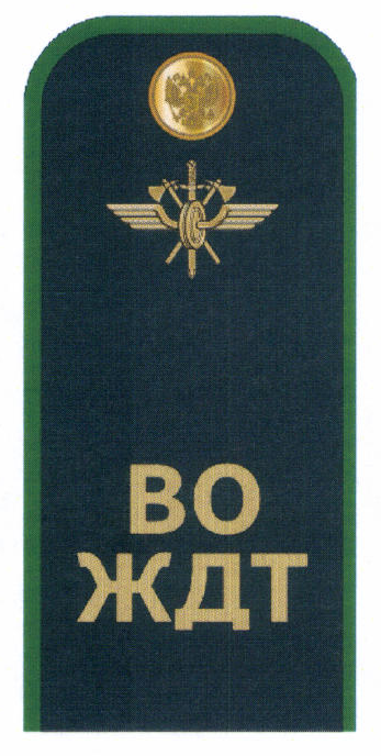 нарукавный знак ФГП ВО ЖДТ России, вышитый шелковой нитью. Нашивается на внешней стороне левого рукава на расстоянии 80 мм от верхней точки рукава до верхней границы знака.